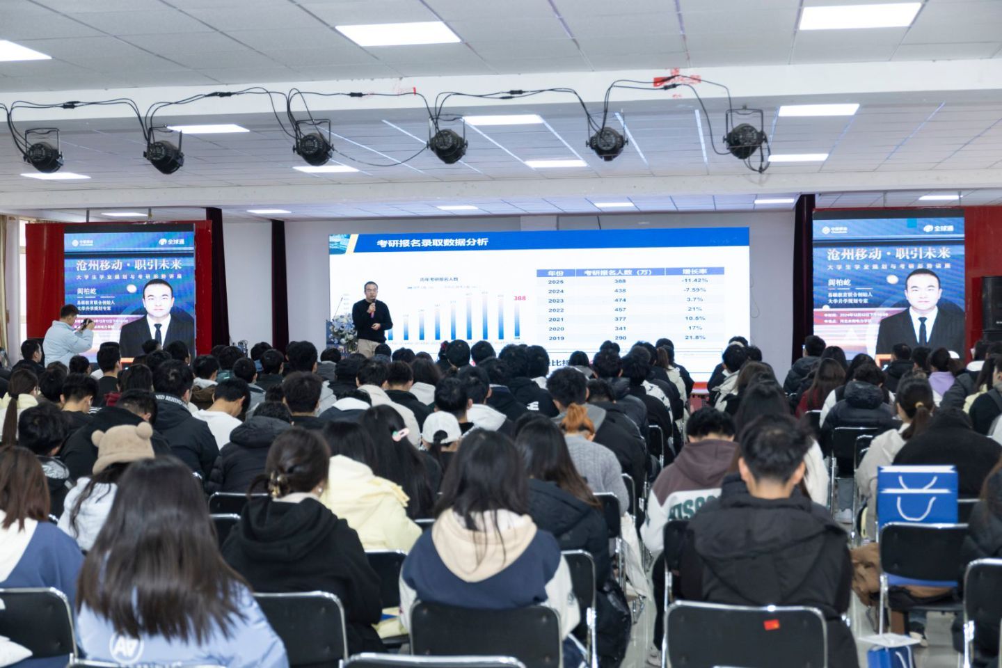 为帮助我校学生明确学业目标,制定合理的考研规划,学生处联合沧州移动特邀学业规划专家于12月12日下午在启智楼学生活动室举办“学业规划与考研形势分析”讲座。共计250余名学生参加此次讲座。首先,学生处副处长路鹏强调了大学伊始做好学业规划的重要性,建议大家可以根据自身情况选择继续深造,为学术和职业生涯打下坚实基础。接下来,本次讲座主嘉宾阎柏屹老师分享了学业规划及考研经验。阎柏屹结合我校专业特色和往届升学案例,...