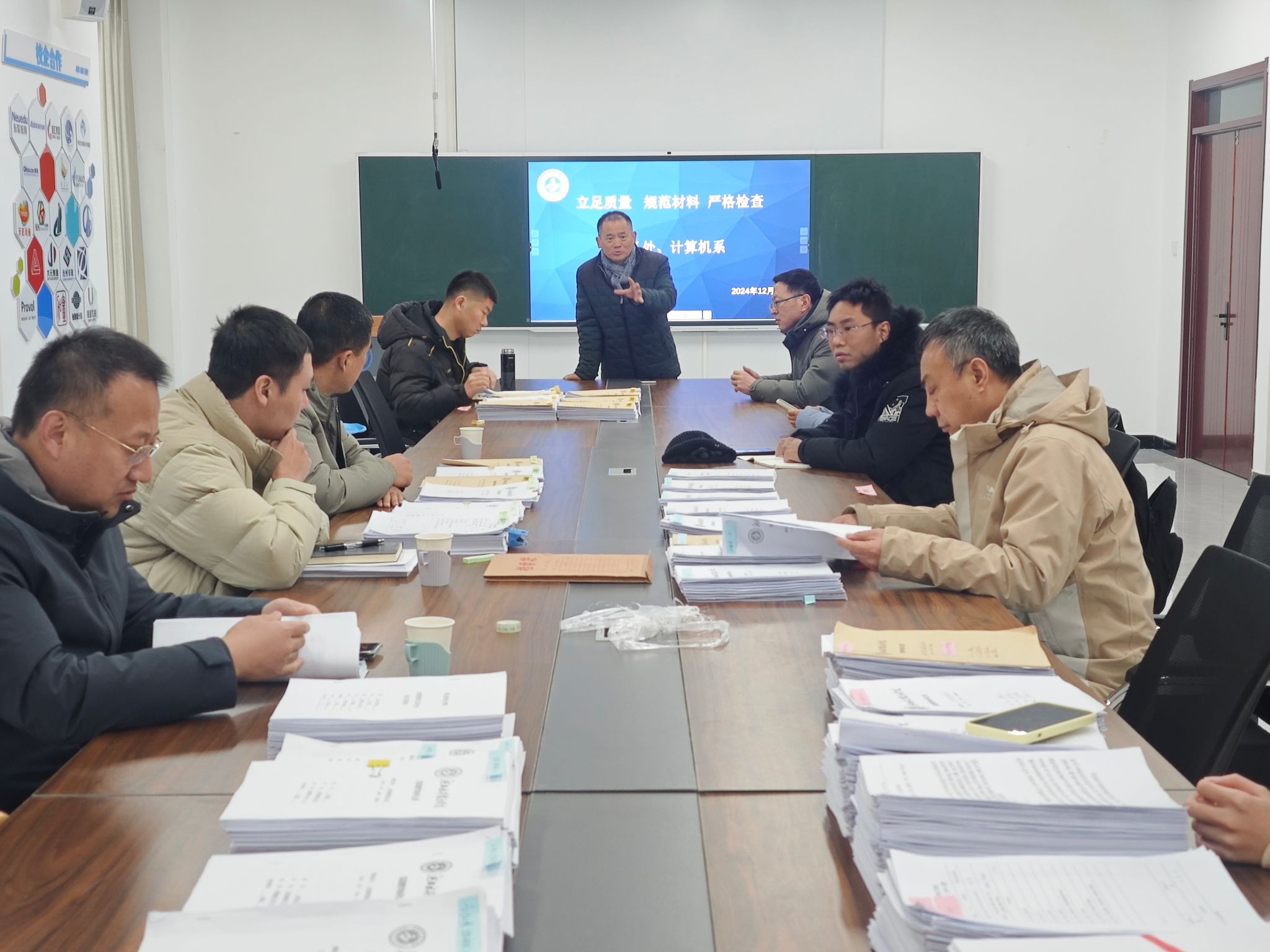 为进一步优化实践教学过程,规范实践教学材料,12月28日上午,计算机系联合教务处于高新区产教融合示范园区7A310开展了以“立足质量 规范材料 严格检查”为主题的综合实践材料检查活动。计算机系党委书记崔炳德、副主任冯涛,教务处教学管理科科长李岩、办公室主任孙文君、实践教学科科长赵福伟及计算机系部分教师参加了活动。崔炳德深入解读了本次活动的主题,强调要立足应用型人才培养,通过严格化管理、高效率整改,不断规范综合实践教学过程,...