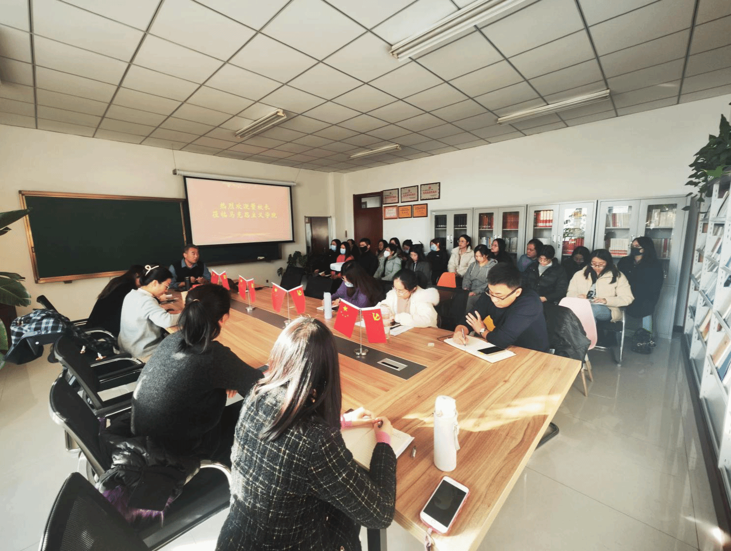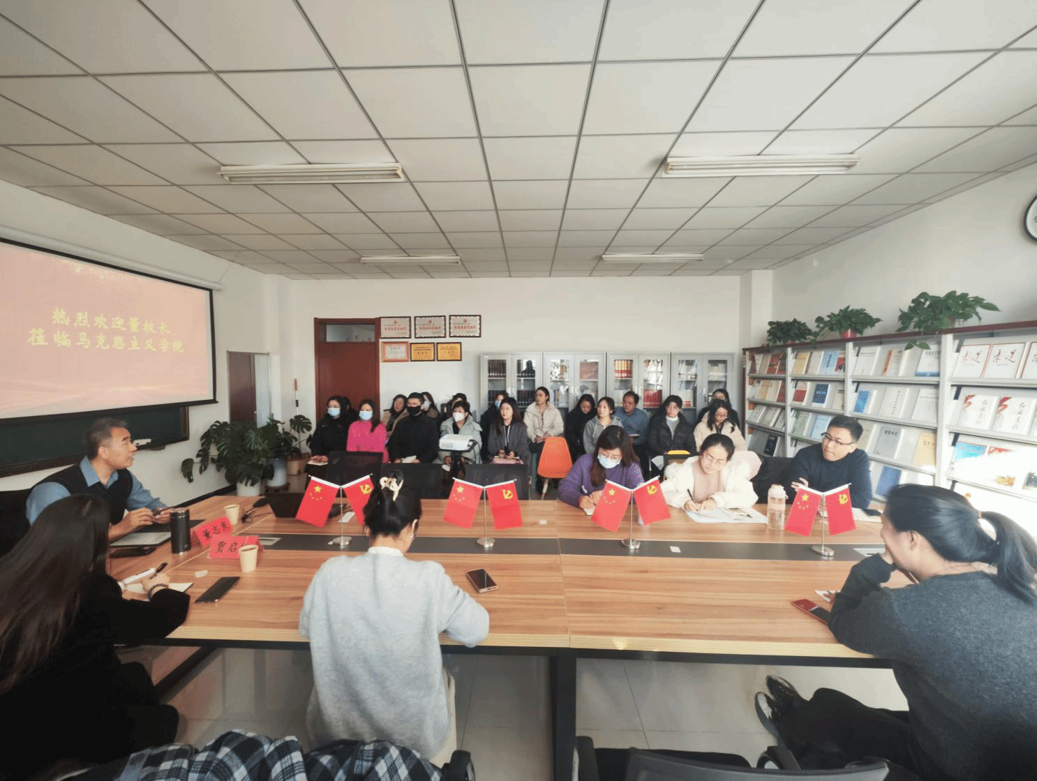 现场办公会在马克思主义学院全体专任教师热烈的欢迎掌声中开始,会议由马克思主义学院院长贾启红主持,各位老师带着认真思考准备的问题,认真聆听。