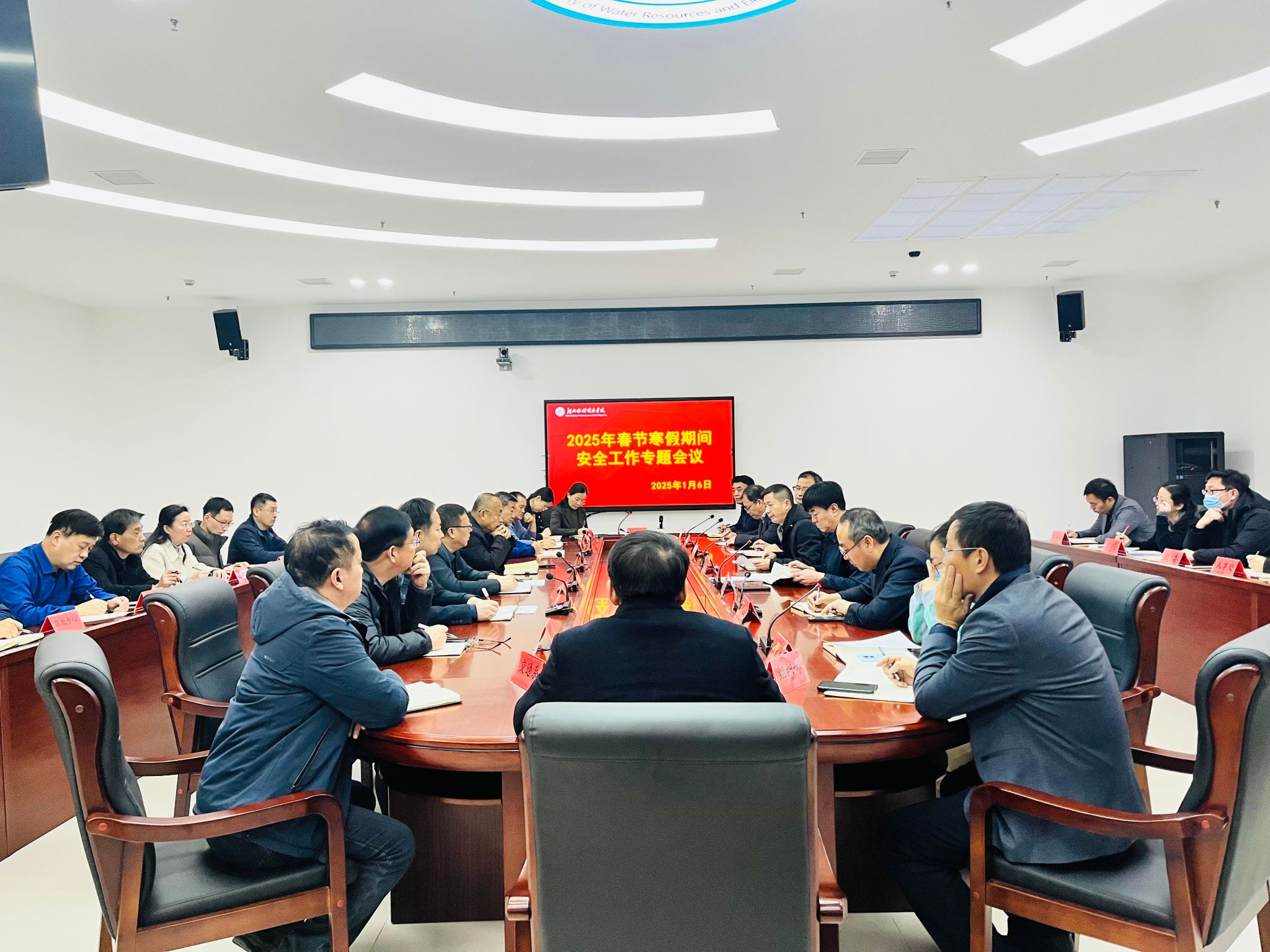 为做好2025年春节、寒假期间学校安全稳定各项工作,1月6日下午,我校在弘文守正楼科技特派员工作室召开安全工作专题会议。党委副书记、校长王滨,党委副书记崔立功出席会议。会议由王滨主持。