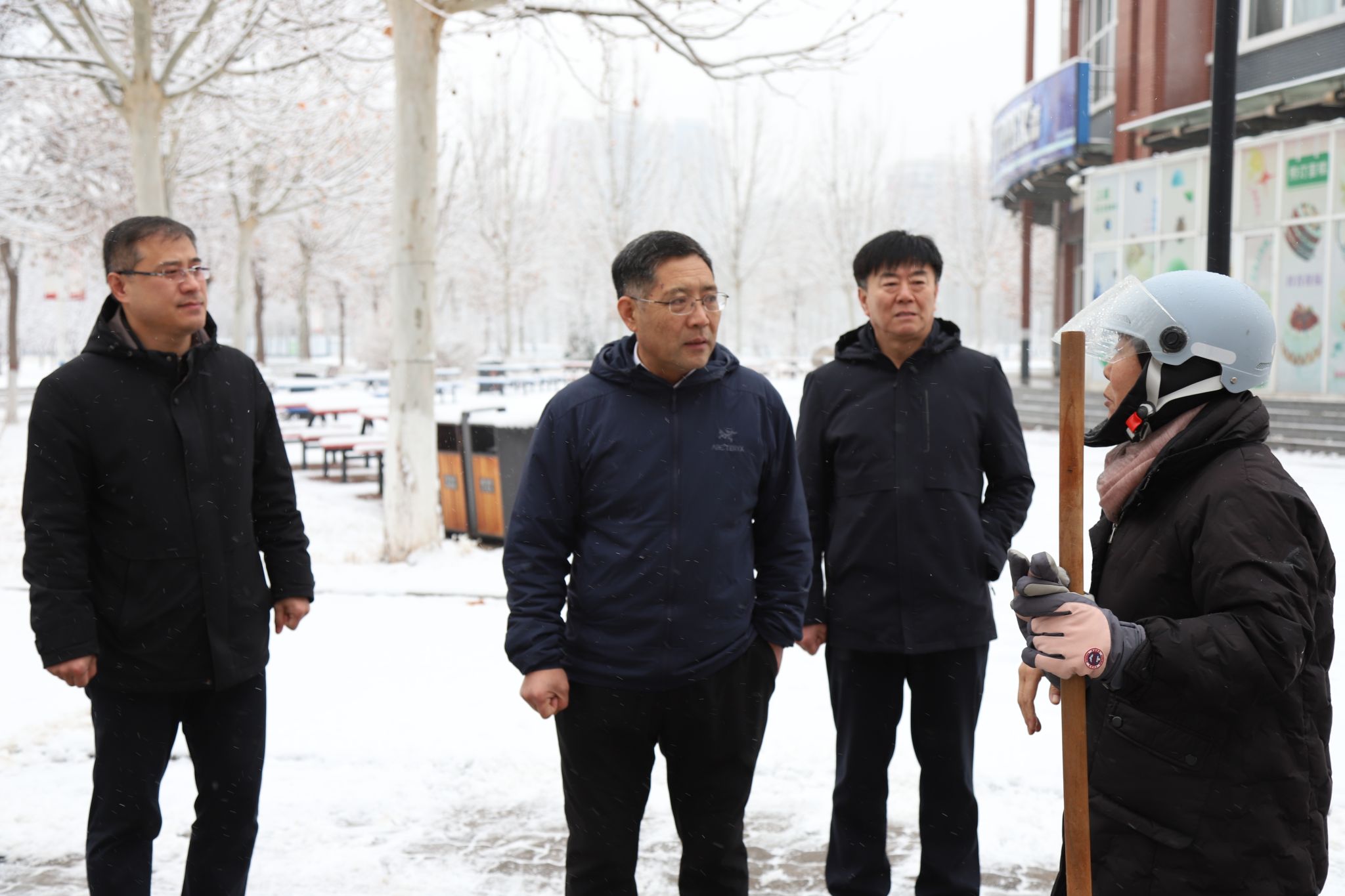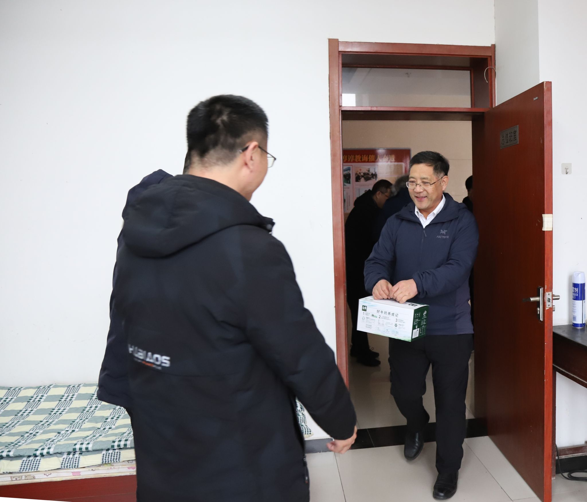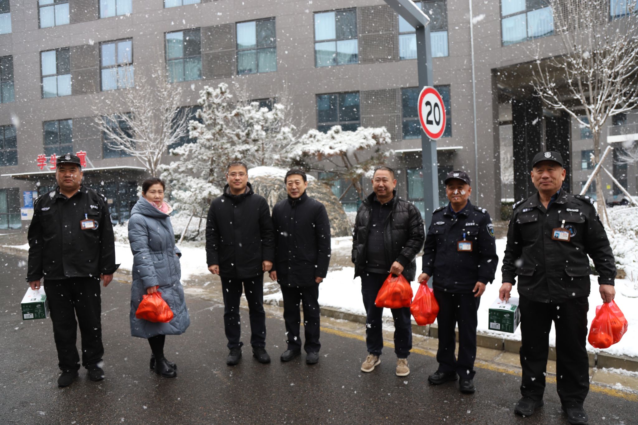 1月26日,党委书记张效松、副书记崔立功、副校长杨凯冒着风雪,带队走访慰问春节期间坚守工作岗位的教职工。张效松一行先后走访了学校总值班室、后勤管理处值班室、消防监控室、学生公寓值班室、警卫室、高新区产教融合示范园区。校领导与坚守在工作岗位一线的教职工亲切交谈,了解相关部门的运行情况,嘱咐大家要确保生产安全,并代表全校师生员工向假期坚守岗位的教职工表示衷心的感谢。值班教职工感谢校领导的问候与关怀,并表示一定坚守岗位、履职尽责,确保春节期间学校的安全运转,使全校师生度过一个祥和、平安的新春佳节。