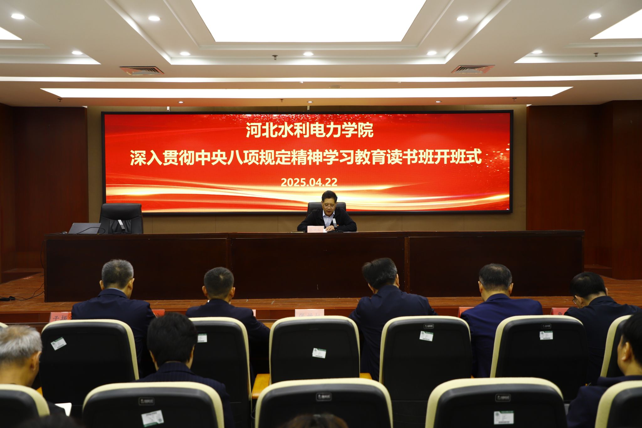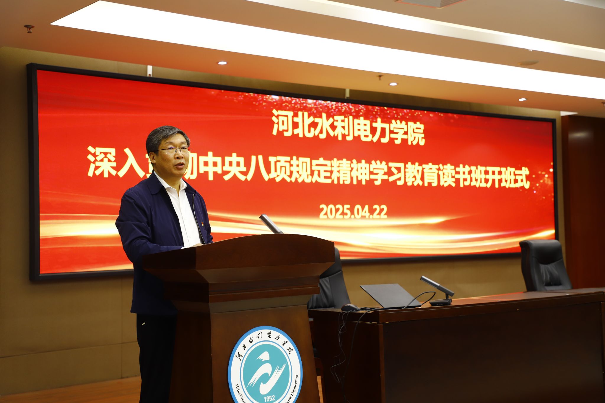 按照省委部署要求,4月22日上午,我校举办深入贯彻中央八项规定精神学习教育读书班开班式。学校党委书记张效松作开班动员讲话,省委党校牛余庆教授应邀作专题辅导报告。副校长于振海主持开班式。