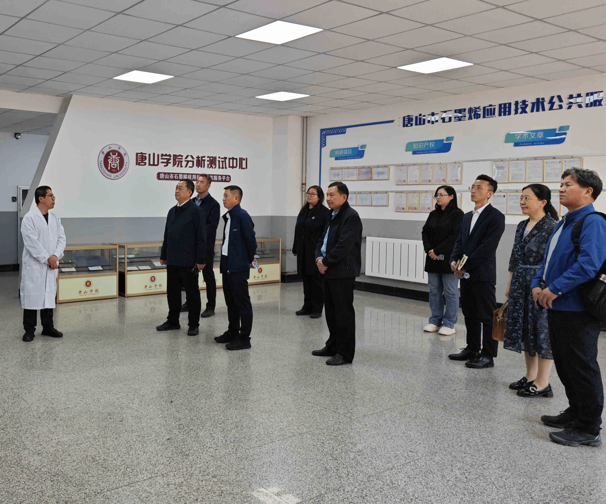 座谈会后,王滨一行参观了唐山学院启航众创空间、石墨烯应用技术公共服务平台实验室、机器人现代产业学院和艺术系展厅,详细了解了唐山学院在学生培养、技术应用、产教融合等方面的成果。双方将以此次调研交流为契机,互学互鉴,推动两校事业实现新发展。