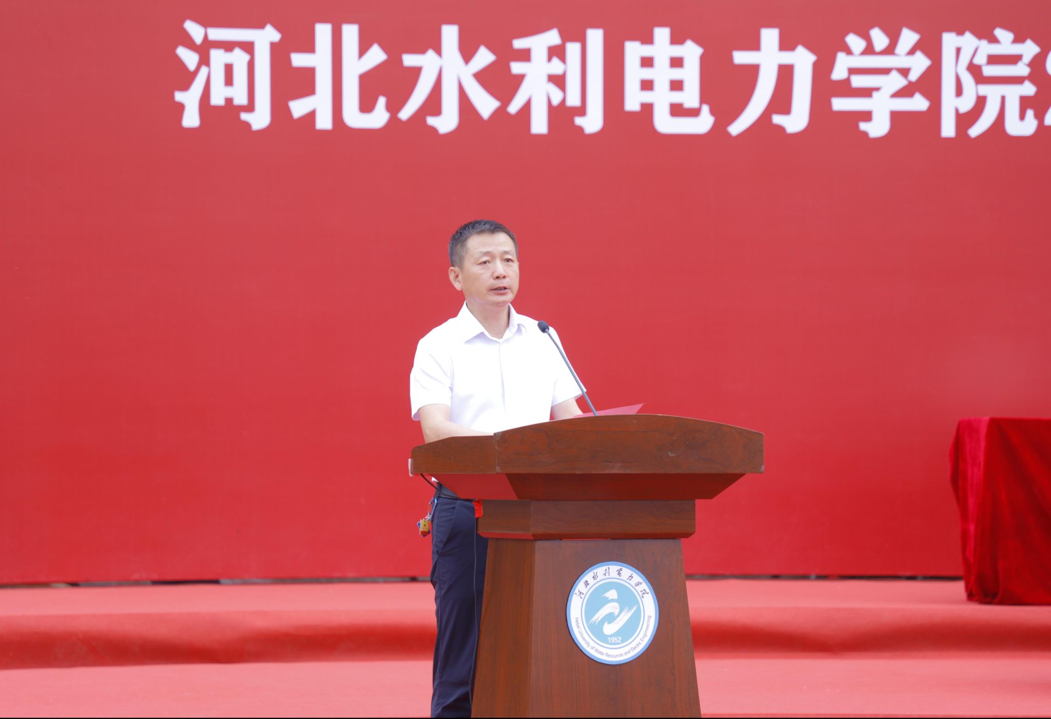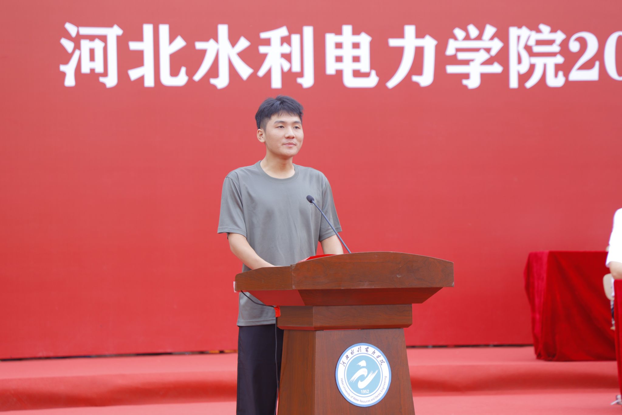 新生代表水利工程系水利水电工程202504班李家昊表达了作为新一届水院学子对大学生活的美好期待以及对未来四年生活的规划,并表示将以“水院人”的新身份矢志不渝,笃行不怠,用汗水浇灌梦想,用奋斗书写青春。