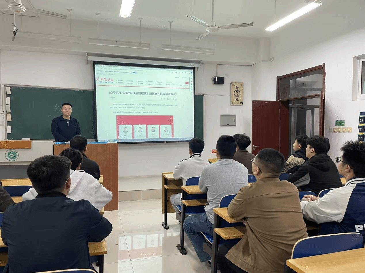 紧紧围绕“三进”目标,有机融入教育教学。马克思主义学院组织召开专题集体备课会,围绕“教材融入、课堂创新、入脑入心”三大关键环节形成共识、明确路径,切实将《习近平谈治国理政》第五卷内容转化为思政课教学资源。对照《习近平谈治国理政》第五卷18个专题,结合《习近平新时代中国特色社会主义思想概论》等思政课程教材,梳理出核心教学知识点,形成“课程——章节——知识点”对应清单,确保理论内容无遗漏、逻辑衔接更顺畅;整合第五卷中的重要讲话、案例数据、实践成果,补充至思政课案例库、课件库,实现教材内容与党的创新理论最新成果同步更新,推动著作内容“进教材、进课堂、进头脑”。