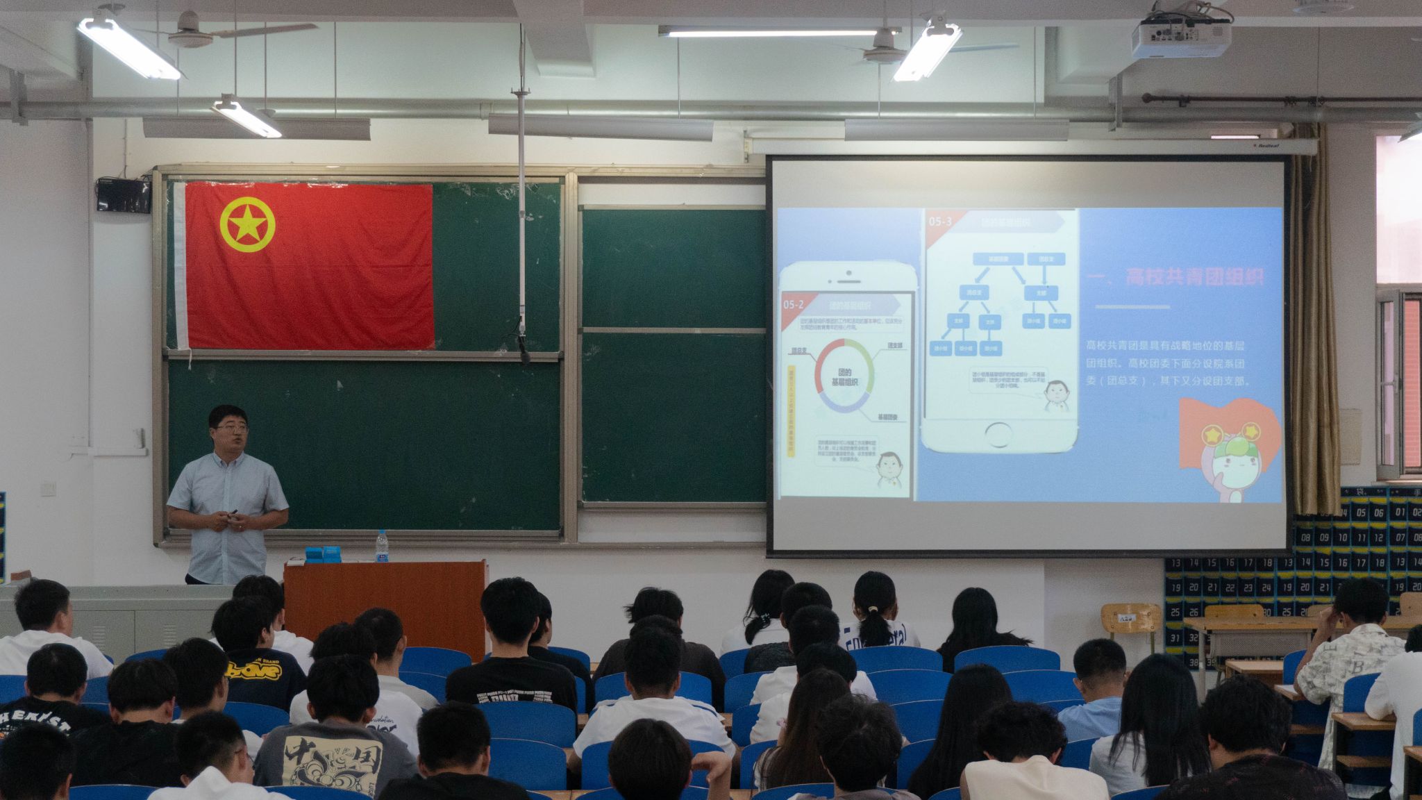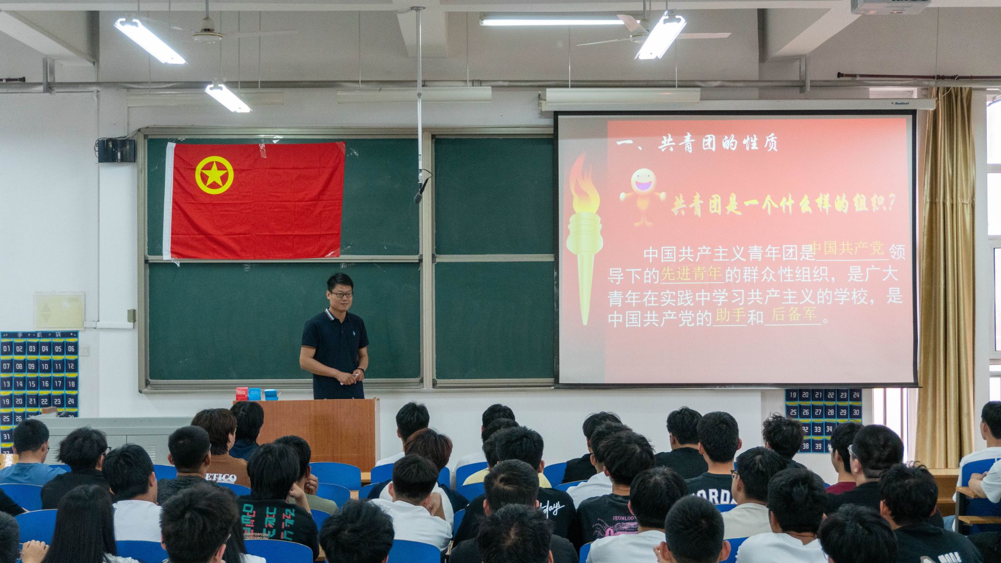 机械工程系团委书记贺欢呼主要讲解了共青团的性质、入团条件、入团流程,以及团旗、团徽和团歌的内涵,勉励入团积极分子要树立正确的入团动机,坚定正确的思想意识,以团员标准规范约束自己,发挥团员的模范和示范作用,希望大家勤奋学习、积极进取,焕发青春激情,向着更高的目标前进,为团组织争光添彩。