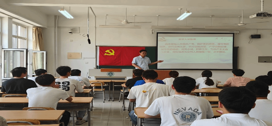 系团委书记贺欢呼表示作为新时代的大学生要不忘初心,洁身自好,廉洁自律,端正态度,珍惜当前的美好生活。在未来遇到困难时,不轻言放弃,学校永远是毕业生最坚实的后盾保障。他希望毕业生党员再攀高峰,在未来的人生舞台上展现自己的价值。最后,他带领全体党员重温入党宣誓。