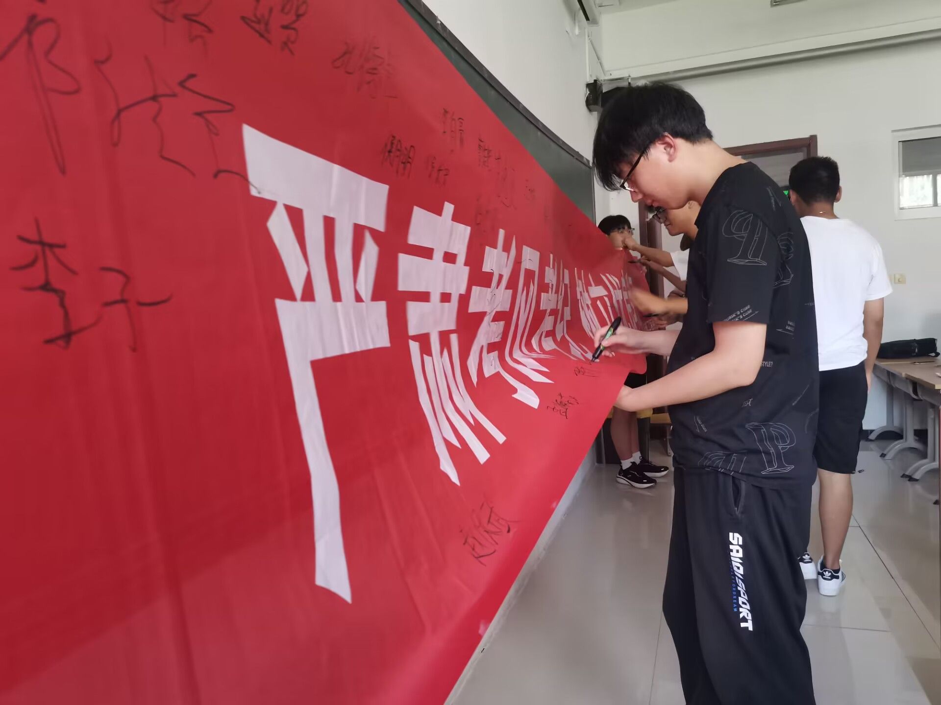 活动中,各班组织同学们签订了《诚信考试承诺书》,并在“严肃考风考纪 树立优良学风”宣传条幅上签字,引导同学们增强守纪意识,规范文明考试行为。