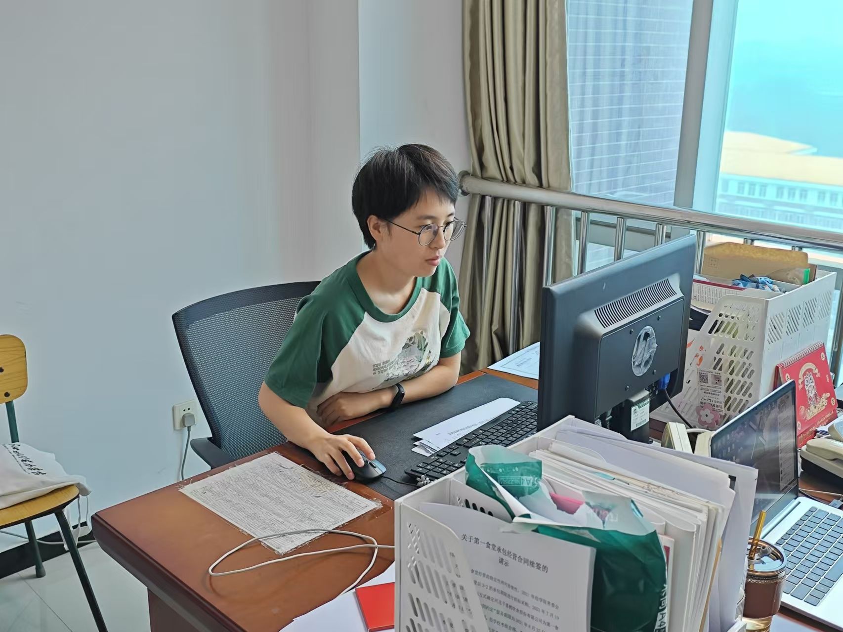 她利用休息时间耐心疏导不适应工作节奏的勤工助学学生情绪,积极协调其他科室为学生提供生活上的便利,连续两天与学生同吃同住,指导学生完成“微后勤”公众号进行升级改版,及时发布服务信息,提高了为师生线上诉求答疑的处理效率。此外,她还主动发挥法律专业特长,积极协助学校处理好涉诉相关事务,无论严寒酷暑,跑律所、跑法院她从没有一句怨言,只为学校争取更多的利益。