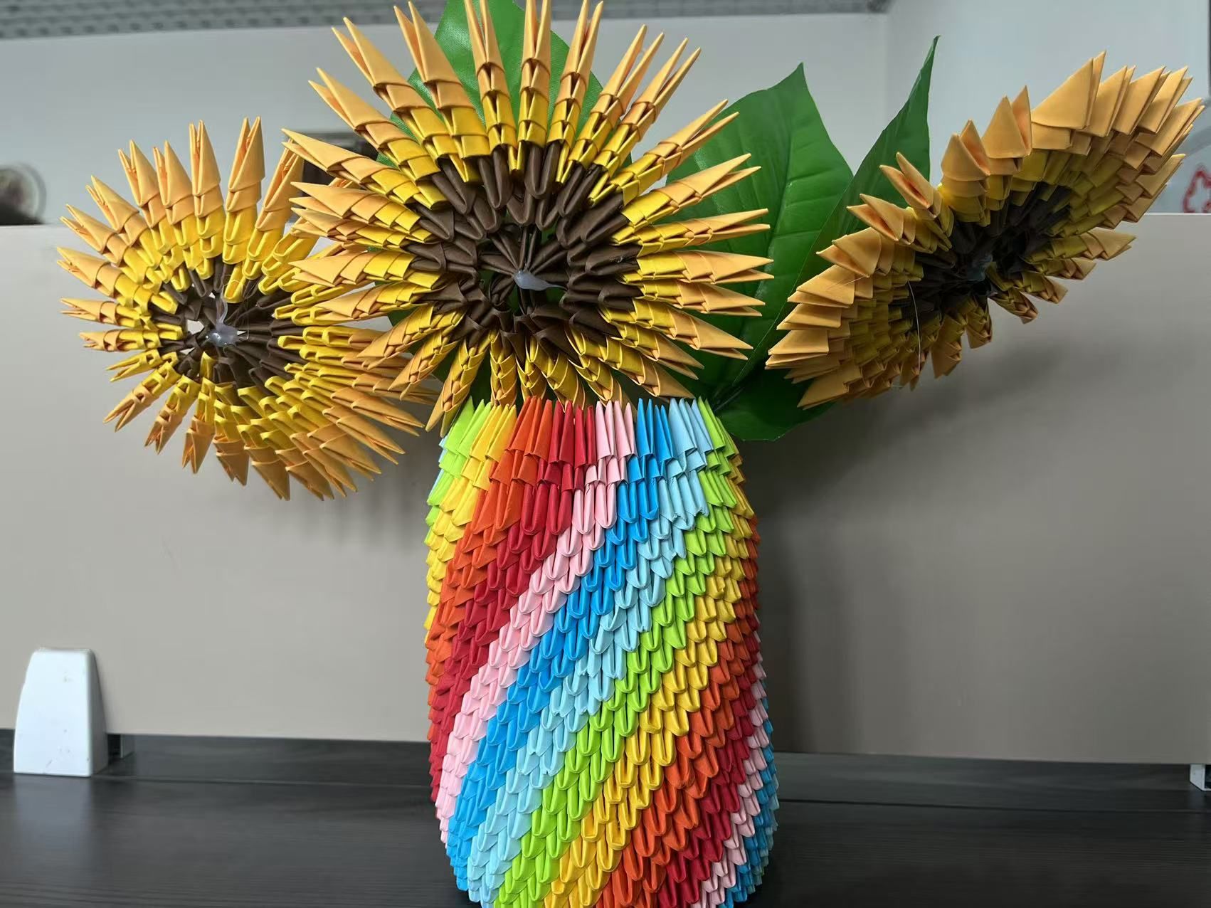 初赛环节中,同学们按照比赛设定,折叠规定数目的折纸,用时最短、效果最好的选手成功晋级决赛。一张张小小的纸片在同学们手指间翻转成一个个精巧的小三角。这不仅考验同学们折纸的速度,而且锻炼耐性,提高学生们的动手实践能力。到了决赛环节,同学们组建团队,折纸、拼接、搭建,每一个步骤都齐心协力、密切配合,在规定时间内高质量完成了一件件精美别致的纸雕作品。