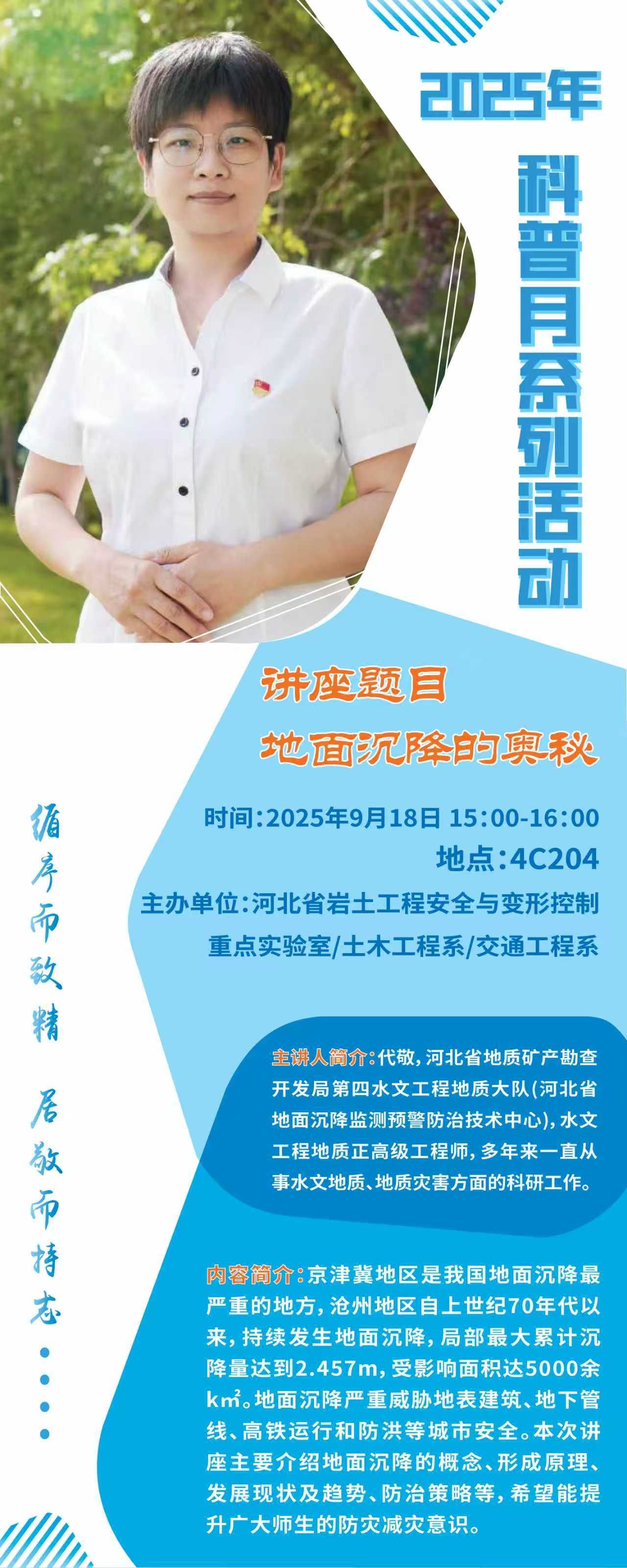 【学术活动】2025年科普月系列讲座—《地面沉降的奥秘》